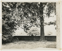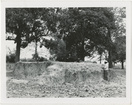 Mower and Scrap Lumber Piles Near the Cemetery Wall