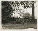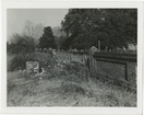 Mower and Scrap Lumber Piles Near the Cemetery Wall