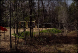 Swing set beside forest
