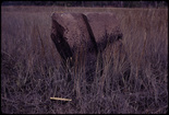 Side view of large grave stone