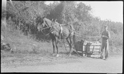 Logging sledGreat Smoky Mountains National ParkLogging sled; one end of the log is placed on the cross piece of the sled, the other end of the log is dragged on the ground. 35mm slide, archives 729.Logging Sled, III-A-Agric-12094, History - Artifacts - Agricultural Implements