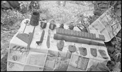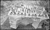 Group of above displayed on table covered with newspaperGreat Smoky Mountains National ParkGroup of above displayed ontable covered with newspaper.Hoe Heads, Mallets, Ladle, Frow, III-A-Agric-12253, History - Artifacts - Agricultural Implements