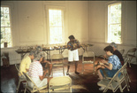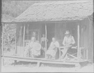 Mack McCarter family, working on baskets on porch of house, sister with goiter, 1930Great Smoky Mountains National ParkOriginal Captions: Working on baskets on porch of house. From left, Sister w/ goiter, son in background, Mrs. McCarter, and Mack. ; Mack McCarter Family; III-P-18137.Working on baskets on porch of house. From left, Sister w/ goiter, son in background, Mrs. McCarter, and Mack.Mack McCarter Family, III-P-18137