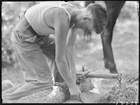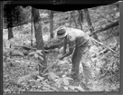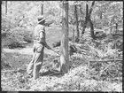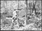 Cutting white oak trees for splitsGreat Smoky Mountains National ParkCutting white oak trees for splits... The trees must be cut after they get their set" (after the sap has stopped running).",Basket-Making, III-A-Gen-12229, History - Artifacts - Miscellaneous (Davis pen; chinking; traps; playhouses; gold mining)