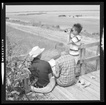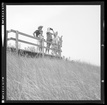 Visitors trying to identify birds as they see them. Observing being done from platform on Pea Island.; Enlargement.