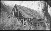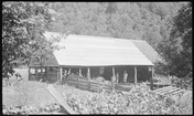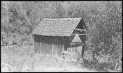 Side rear view of Tub mill on LeConte Creek, North CarolinaGreat Smoky Mountains National ParkJunglebrook Tub Mill; Cherokee Orchard Road; Building No. 132, II-B-(5)-3010, Physical Facilities - Buildings - Historic buildings being preserved