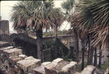 Visitors in courtyard of coral castle Everglades National Park; National Park Service View of visitors with monoliths in courtyard of coral castle; "Coral rock castle before being removed to U. S. # 1".