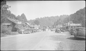 Craft shop and tourist cabin, Cherokee Indian ReservationGreat Smoky Mountains National ParkCraft shop and tourist cabin development along NC Highway 107 in the Cherokee Indian Reservation at mouth of Lambert Branch, .4 of a mile south of GSMNP... View taken looking towards park. Buildings on right are same as seen in preceding picture.Cherokee, North Carolina, IV-C-13533, Miscellaneous - Cherokee NC