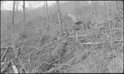 Both dead and living chestnut were cut here. Fire Hazard Reduction, Chasteen Creek, 1935Great Smoky Mountains National ParkBoth dead and living chestnut were cut here. The living chestnut was all diseased and would be dead in three years or less...Cuting to thick for a slope as thick with chestnut and on as steep a slope...Area logged about 1927. Only dead chestnut should be cut to hold down sprouting...Debris not scattered. SE exposure...Cut in January 1935. X" painted on oak stump from which picture was taken.", Fire Hazard Reduction; Chasteen Creek, IV-Z-4369, Miscellaneous