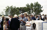 Visitors touching Entrance sign to Dante Fascell visitor center