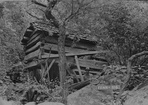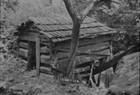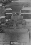 Door after restoration, Jim Carr Mill, Newfound Gap Highway, Sugarlands, TennesseeGreat Smoky Mountains National ParkInterior of the mill, looking toward the door, after restoration. Note the rib-pole roof. The boards for the door were split from a log with an axe. Also note the wooden hinges.Jim Carr Mill Newfound Gap Highway