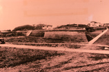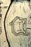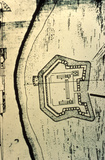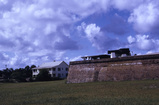 Cannon visible over the fort wall on the right, unknown building the middle, ...