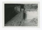 Structures, Exterior, H.S. #9, Greenhouse X- Biography Non-park Personnel. Three views of Caroline Weber near the Greenhouse prior to restoration.