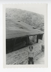 Structures, Exterior H.S. #9, Greenhouse. View of part of the overhang of the roof of the Greenhouse prior to restoration.