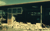 Scattered masonry of building after stormEverglades National Park; National Park ServiceView of exterior damage to building; 00 Oct 1960. Caption reads: "Two views of exterior damage to shop building; Flamingo". Locality: Flamingo.