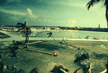 Remains of house after hurricaneEverglades National Park; National Park ServiceDistant view of remains of house amid much water, person by house; 00 Oct 1960. Caption reads: "Campground, Flamingo. Camptenders residence in foreground."