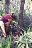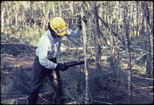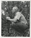 Close-up of ranger crouching in grassEverglades National Park; National Park ServiceClose up of a ranger kneeling and holding a machete; circa 1960's; "Wilderness Ranger Erwin Winter".