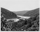 View of flooded town from Maryland Heights, 1972 Harpers Ferry National Historical Park 1972 flood -view of flooded town from MD heights. June 1972. Shows most of, Shenadoah St. underwater. View includes most of Point and Potomac St. to train platform.