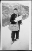 Kelly McCarter, 14 years. News-Sentinel on the Newfound Gap Highway Route, in the Great Smokey Mountains National Park, 1924Great Smoky Mountains National ParkKelly McCarter, 14 years. News-Sentinel on the Newfound Gap Highway Route, in the Great Smokey Mountains National Park. He is seen here, opposite the west end of Mt. LeConte, in 10 inches of snow. His widowed mother is Mrs. Martha McCarter. Lives on the NFG Highway near the scenic Loop. He said he makes $2.00 a week. McCarter, Kelly, III-P-4141, History - Mountain People