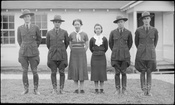Group portrait of ranger force and secretaries, views with hats on and hats ...