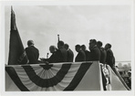 Speakers seated on stage for dedication ceremony, Krug, Barkley, Willis, Allen, ...
