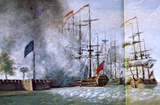 Illustration by James Peale of attack on Fort Sullivan by Sir Peter Parker's ...