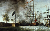 Painting by James Peale of Sir Peter Parker's attack on Fort Moultrie during Revolutionary War, South Carolina