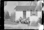 Group of 11 hotel cottage guests posed on porch of cottage, Mammoth Cave Hotel