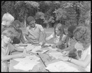 Children rubbing textures, Environmental education, SummerGreat Smoky Mountains National ParkRubbings of textures. Lorrie Sprague and children.Summer in the Park; Environmental Education, IV-U-Ed-16089, Miscellaneous - Use of Park - Environment Education