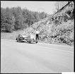 Hydroseeding Great Smoky Mountains National Park Hydroseeding tree seeds, Route 15, May 1, 1964. Photos part of report on this demonstration: Application of slurry onto treatment area: The equipment moves 5-10 mph, depending on percent of coverage required. Note the thick stream of slurry, which breaks into large, balled particles at top of slurry arc.Hydroseeding, II-R-Maint-6508, Physical Facilities - Roads - Maintenance of Roads