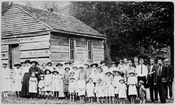 Students and teachers in front of Walker Valley schoolGreat Smoky Mountains National ParkStudent and teacher stand before walker Valley School to have their picture taken,Walker Valley School Group, III-P-16690, History - Mountain People