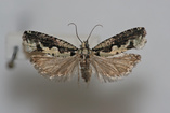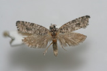 Olethreutes griseoalbana (Walsingham) 1879Congaree National ParkMoth size: 13mm. Habitat: Clear and selectively cut areas. Specimen collected by Joseph D. Culin, Brian G. Scholtens, and John A. Snyder. Species identified by Brian G. Scholtens.