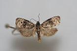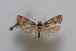 Notocelia illotana (Walsingham) 1879Congaree National ParkMoth size: 12mm. Habitat: Water. Specimen collected by Joseph D. Culin, Brian G. Scholtens, and John A. Snyder. Species identified by Brian G. Scholtens.