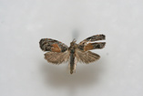 Olethreutes griseoalbana (Walsingham) 1879Congaree National ParkMoth size: 13mm. Habitat: Clear and selectively cut areas. Specimen collected by Joseph D. Culin, Brian G. Scholtens, and John A. Snyder. Species identified by Brian G. Scholtens.