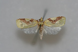 Sparganothis distincta (Walsingham) 1884Congaree National ParkMoth size: 22mm. Habitat: Clear and selectively cut areas. Specimen collected by Joseph D. Culin, Brian G. Scholtens, and John A. Snyder. Species identified by Brian G. Scholtens.